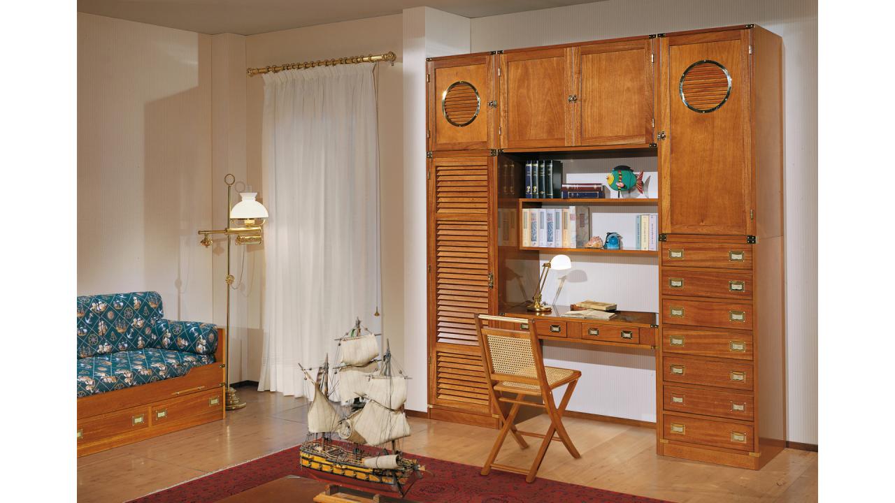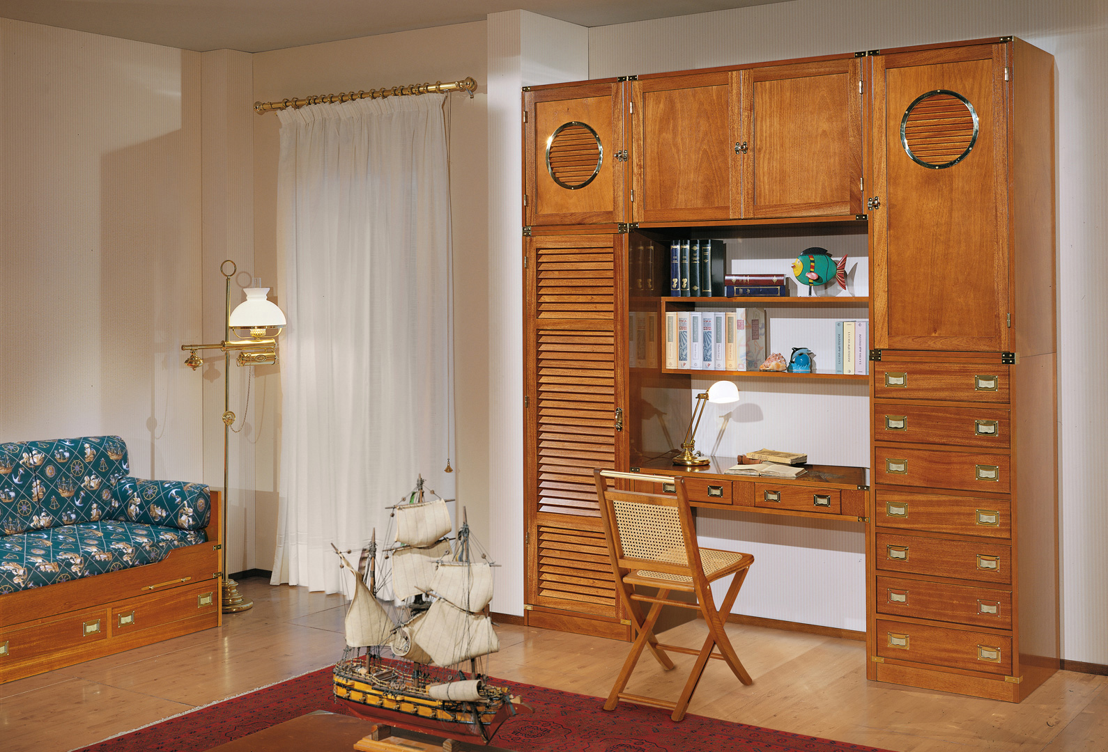 В мореходстве пространство всегда играло важную роль, благодаря чему и родились эти практичные и функциональные мебельные решения, которые позволяют использовать всю высоту пространство, например, мостовые шкафы и перекидные книжные полки.