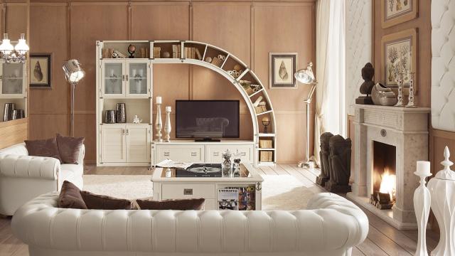 В данном решении для гостиной Caroti предлагает сервант Millerighe в комбинации с подставкой для телевизора и отделением для хранения дисков сбоку.